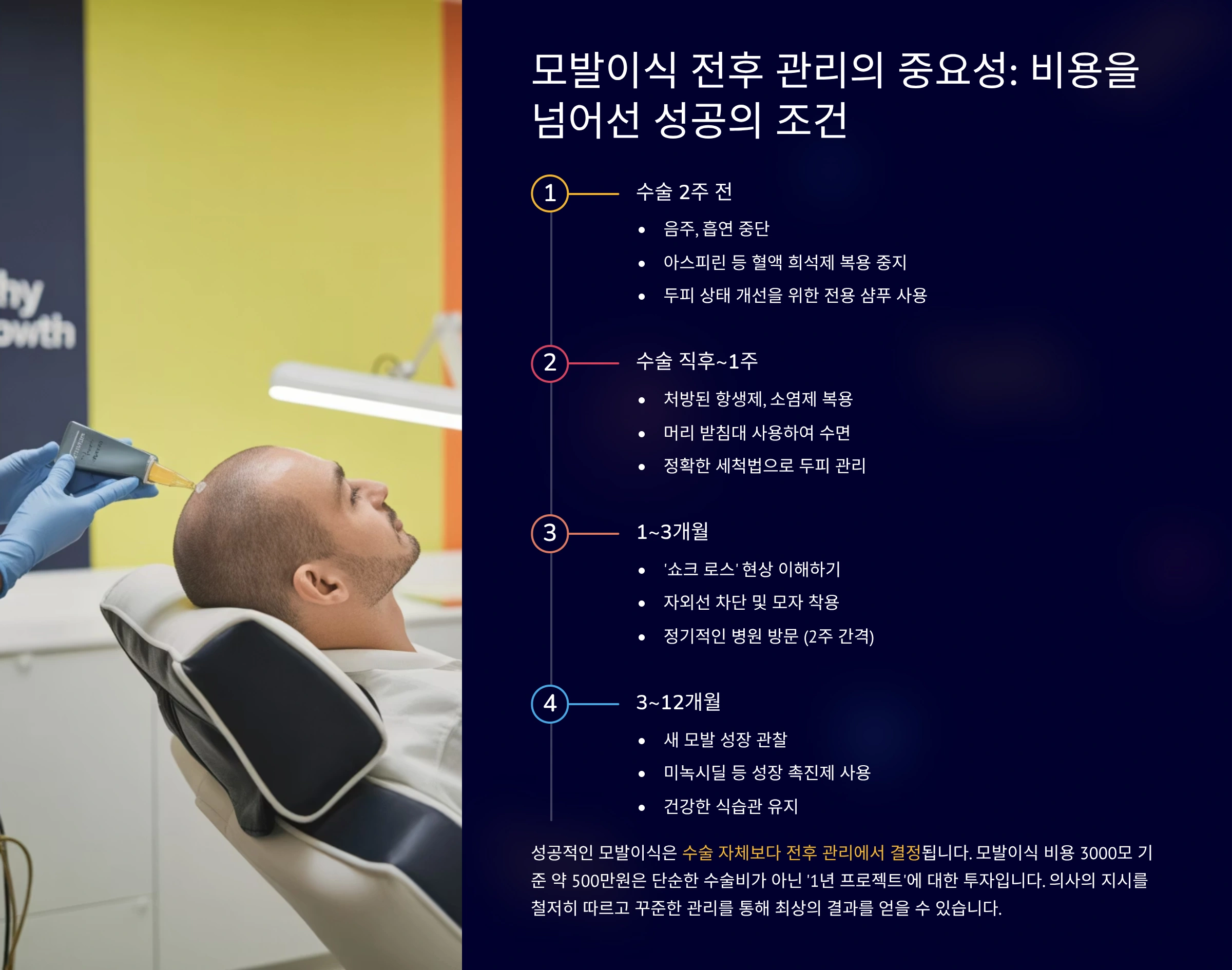 7. 모발이식 전후 관리의 중요성: 비용을 넘어선 성공의 조건 ✨