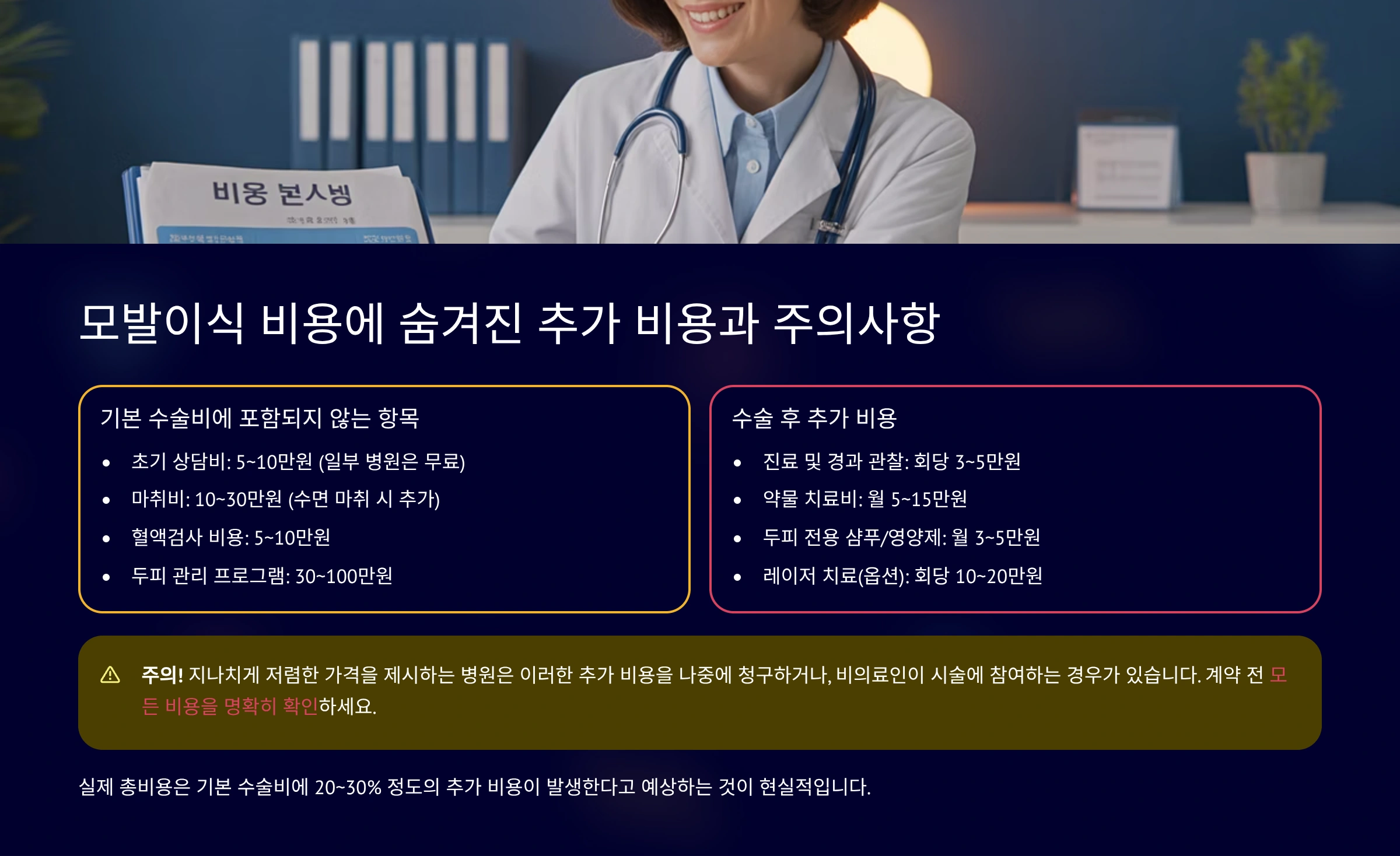 5. 모발이식 비용에 숨겨진 추가 비용과 주의사항 ⚠️