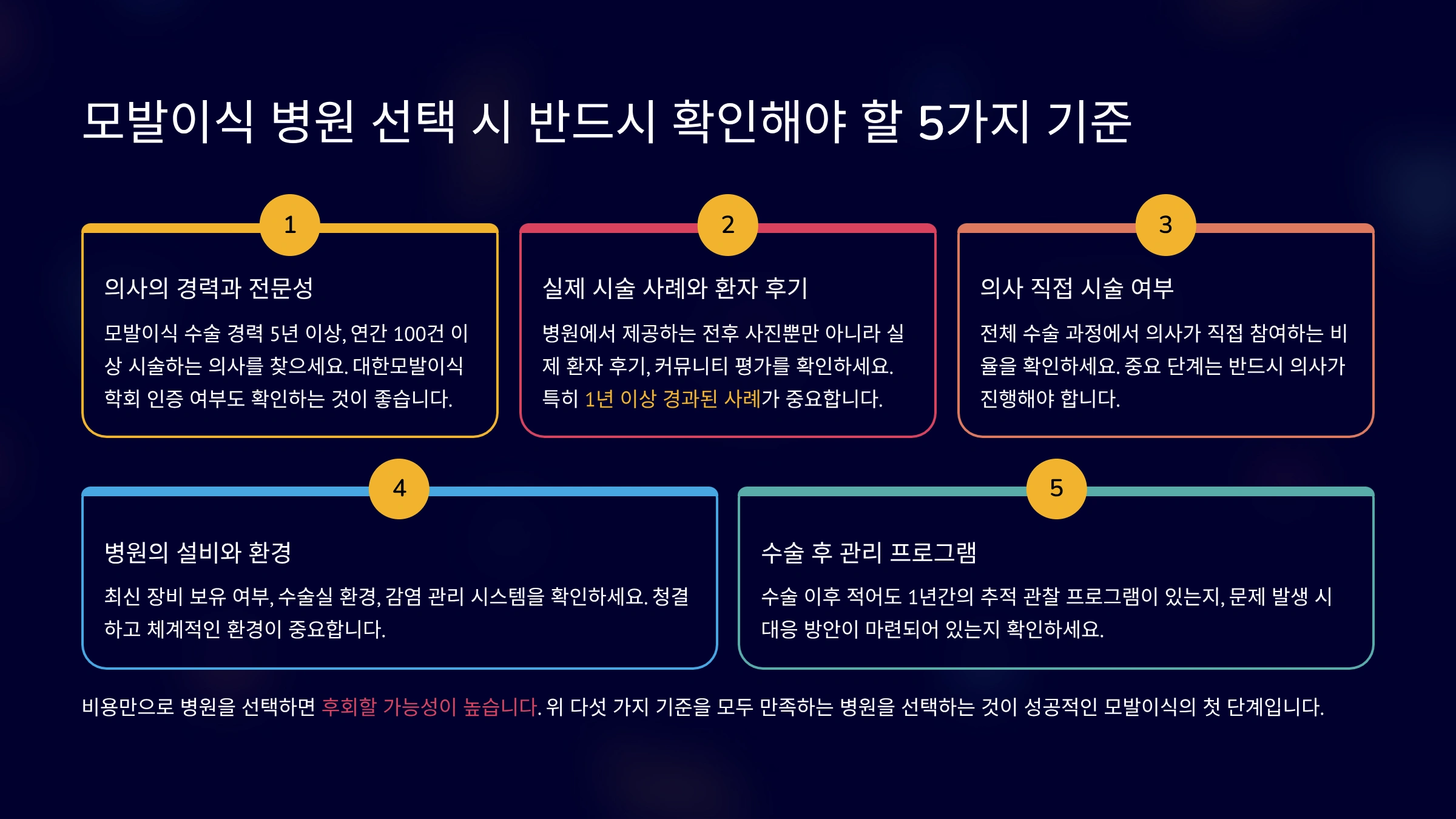 4. 모발이식 병원 선택 시 반드시 확인해야 할 5가지 기준 ✅