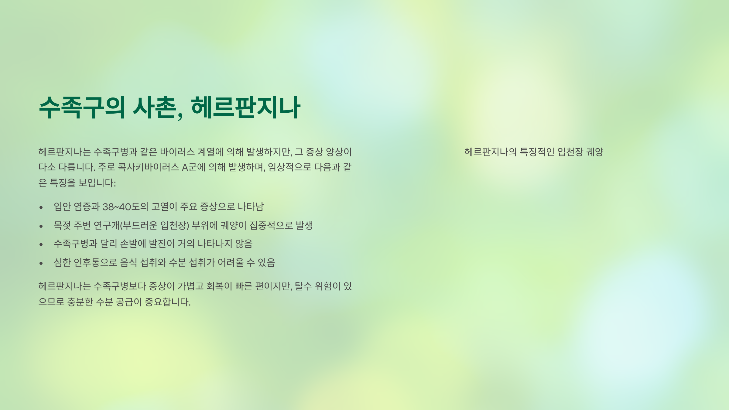 - 2️⃣ 수족구의 사촌, 헤르판지나