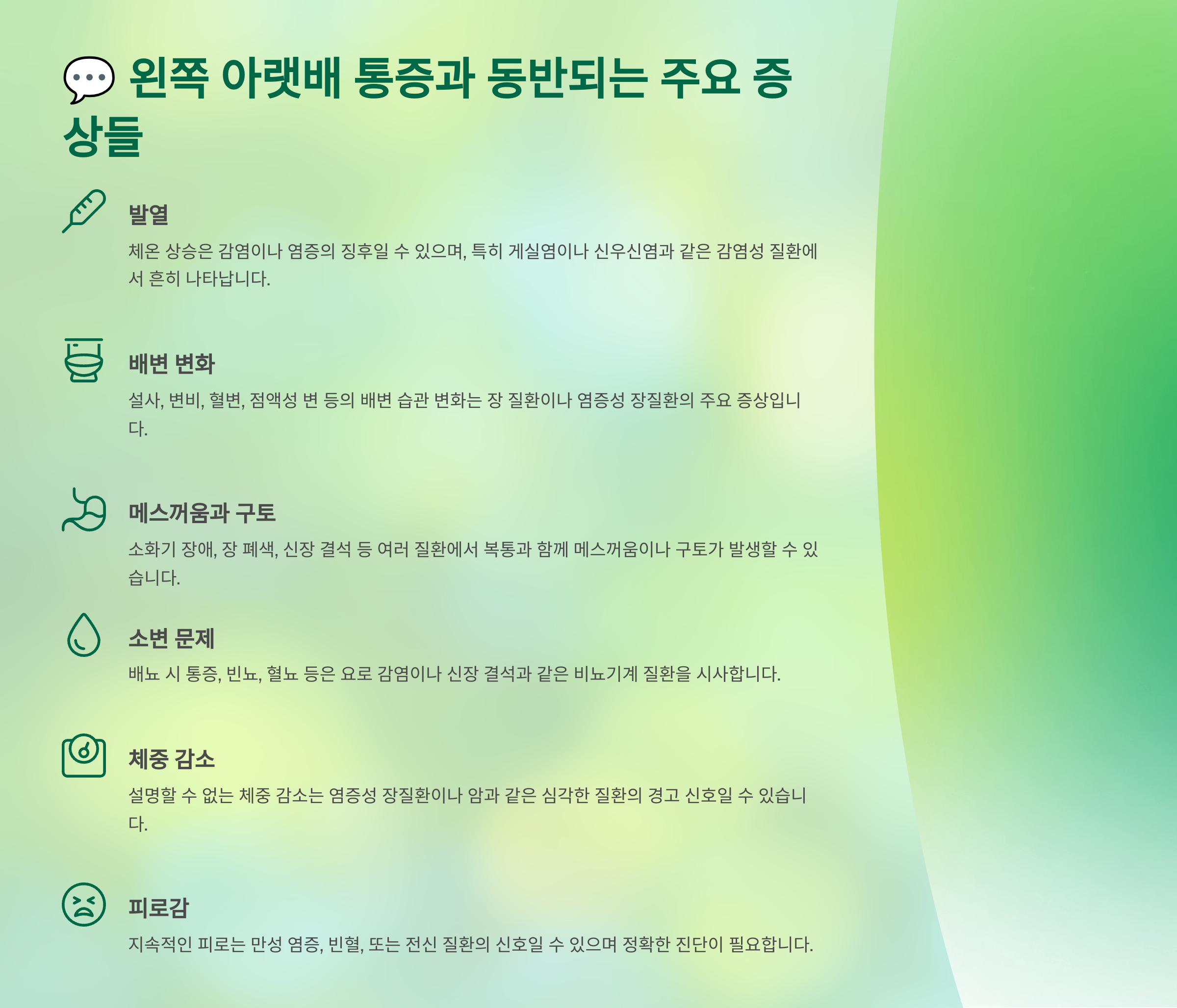 💬 왼쪽 아랫배 통증과 동반되는 주요 증상들