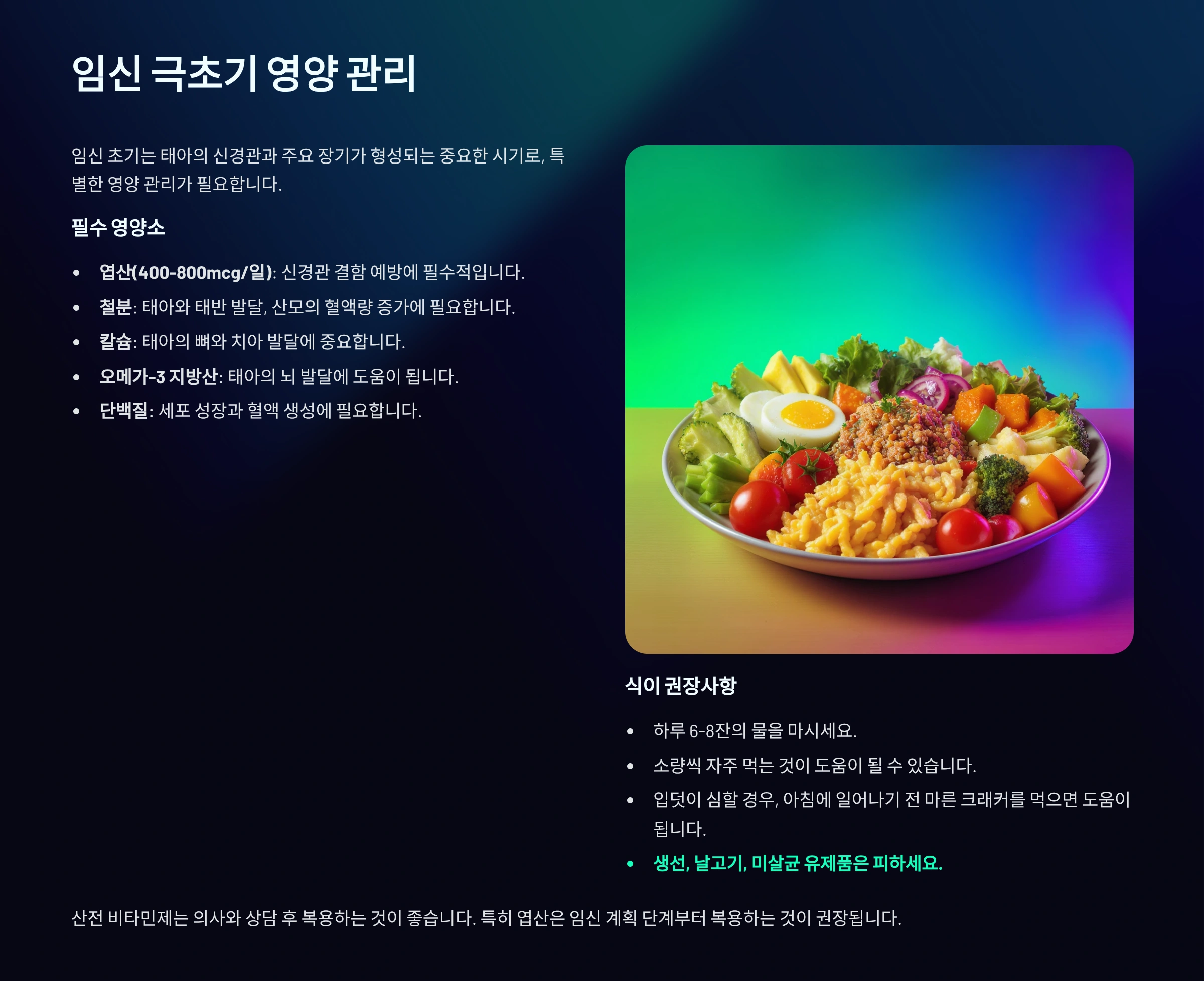 🥗 임신 극초기 영양 핵심표