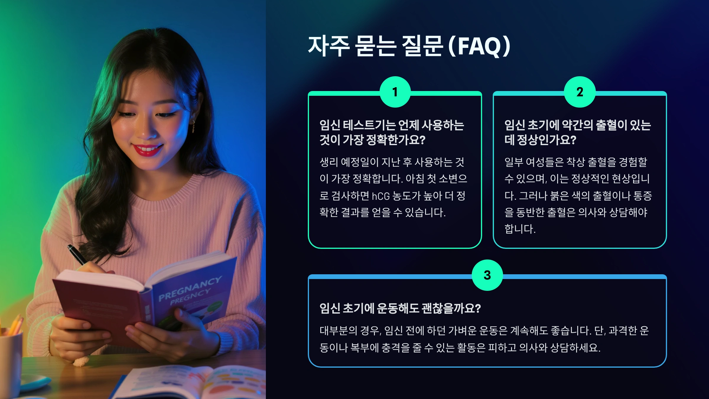 이러한 호르몬 변화를 이해하면, 극초기에 나타나는 신체 반응을 ‘이상 증상’이 아닌 ‘정상적인 임신 과정’으로 받아들일 수 있어요. 불안감을 줄이고, 몸이 보내는 신호를 긍정적으로 받아들이는 것이 중요해요.