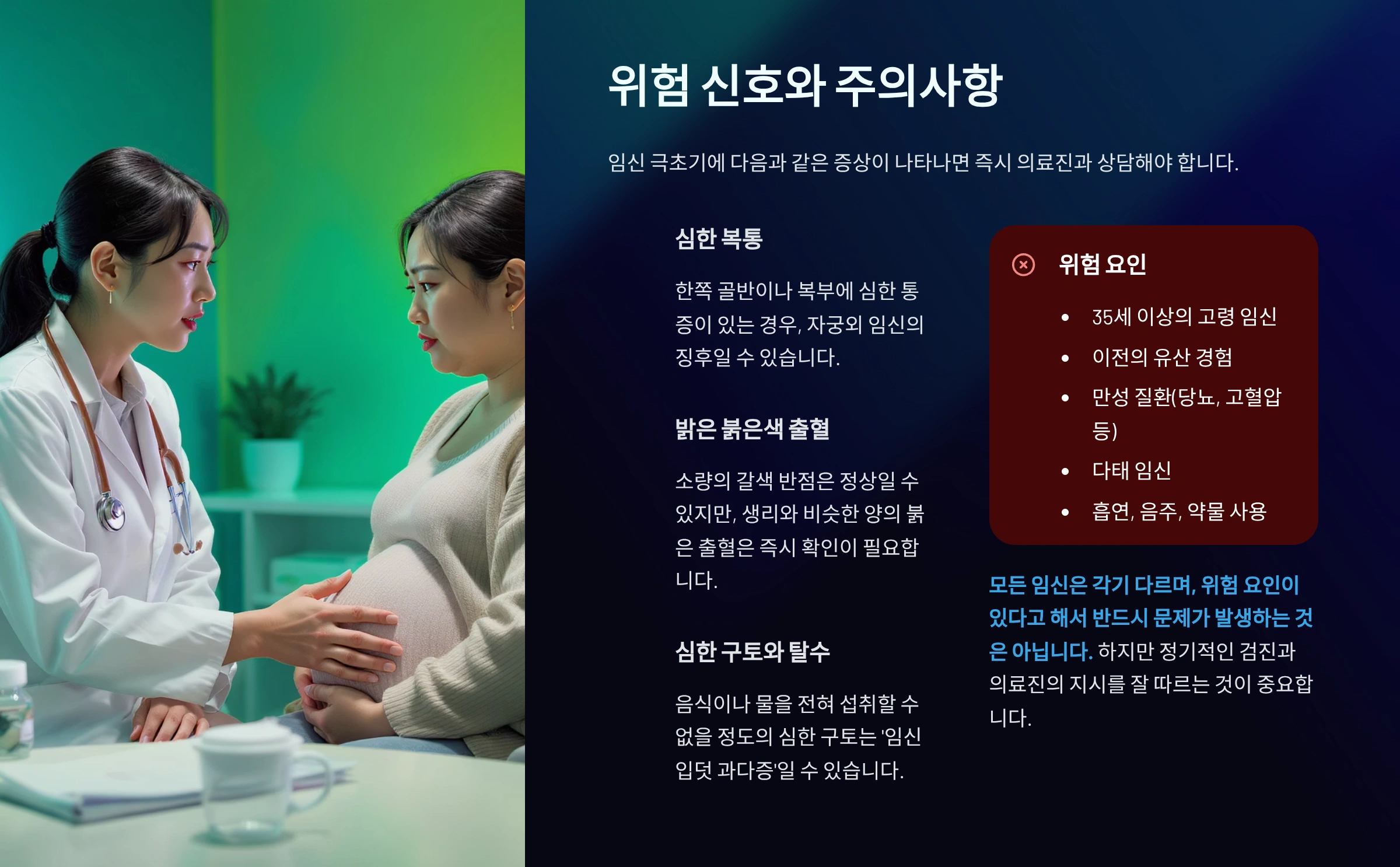 | 응급 상황 | 급성 통증, 지속 출혈, 실신, 발열은 즉시 진료 기관을 이용해요. |