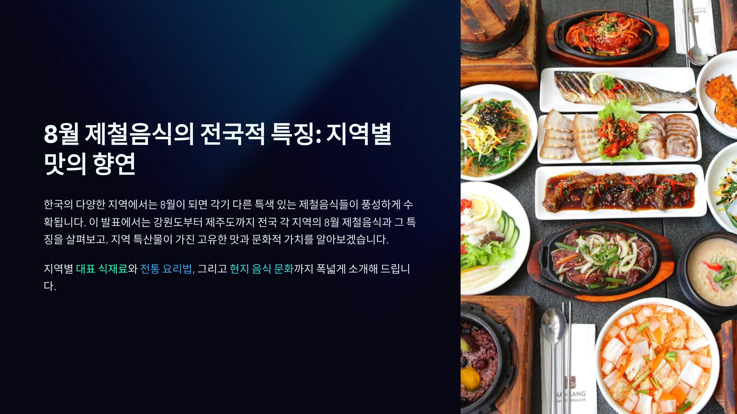 Q1. 8월 전국 8도 제철음식을 한눈에 정리하면 뭐가 핵심이에요? 🗺️