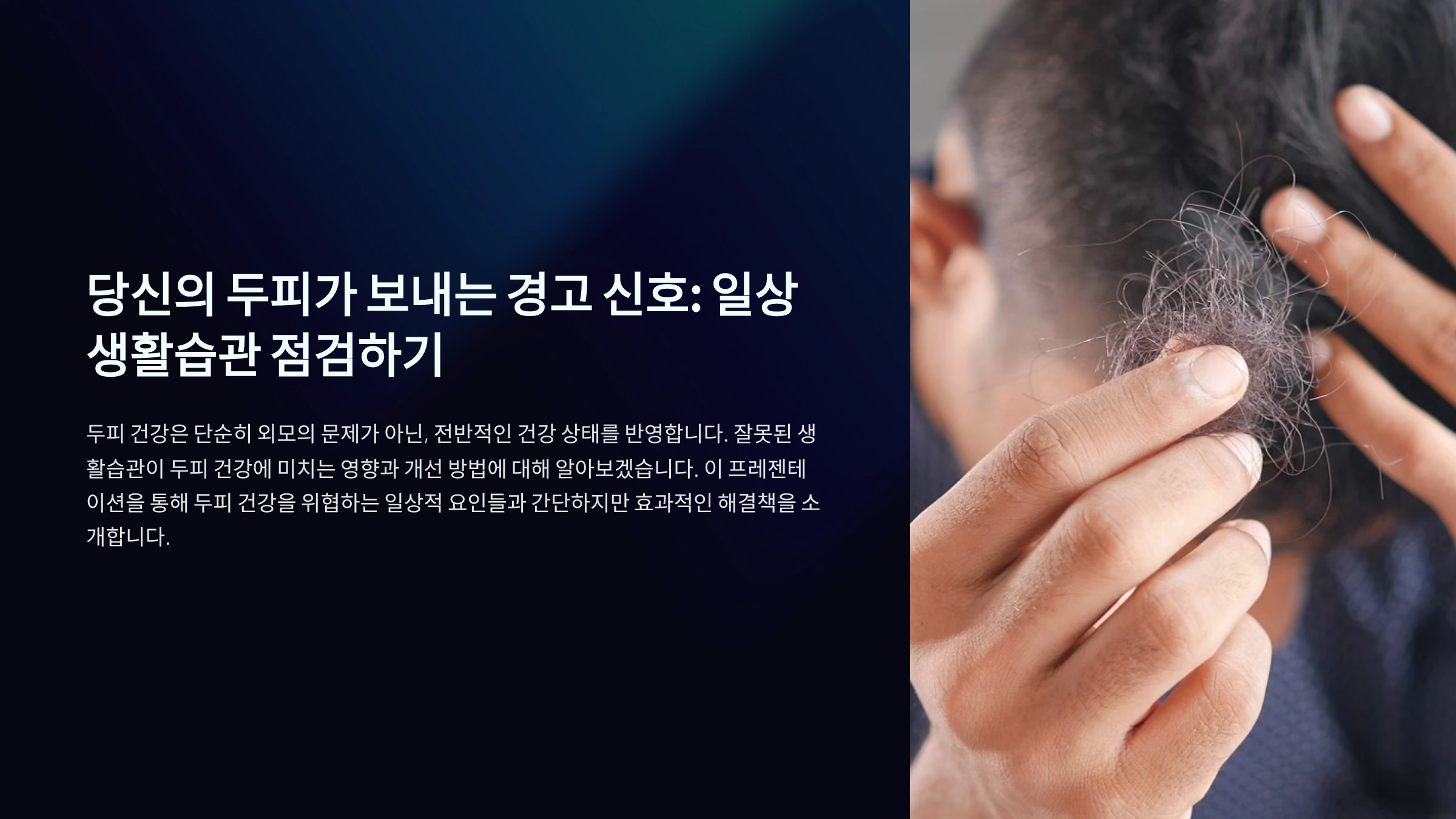 그럼 지금부터, 어떤 습관들이 탈모를 심각하게 악화시키는지 하나씩 알아볼까요?👇