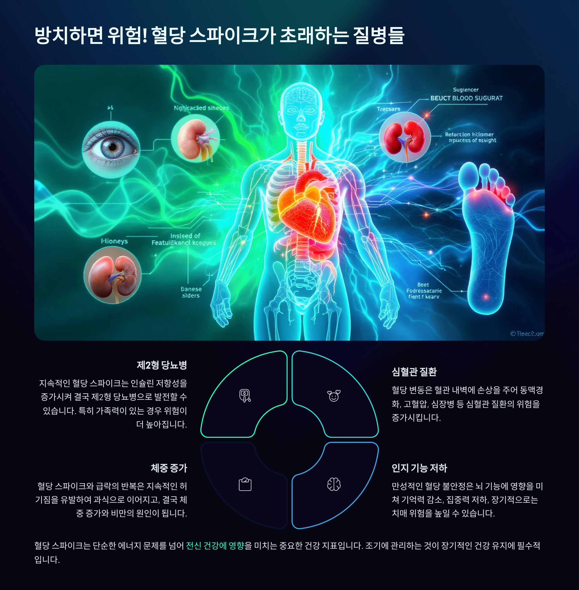 혈당 스파이크를 단순한 피로감으로 여기고 방치하면, 우리 몸은 서서히 망가져 심각한 만성질환으로 이어질 수 있습니다.
