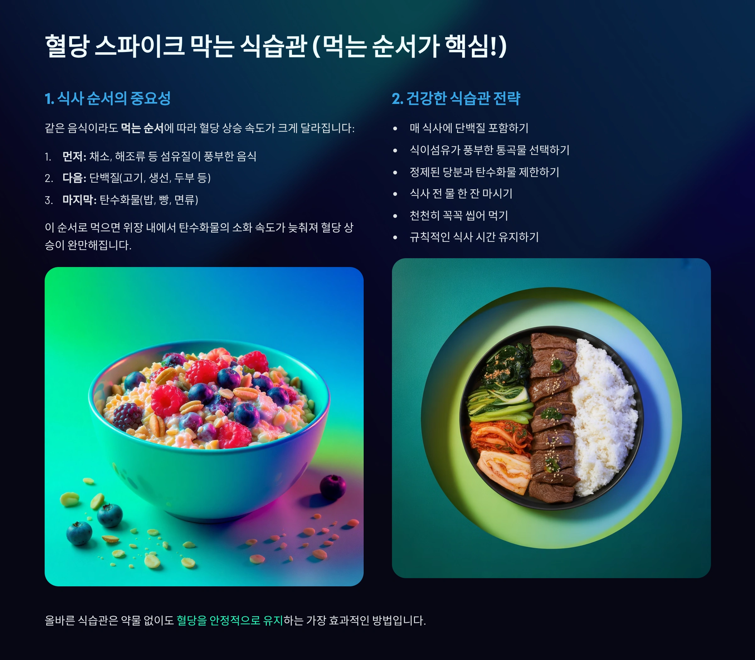 7. 혈당 스파이크 막는 식습관 (먹는 순서가 핵심!) 🥗