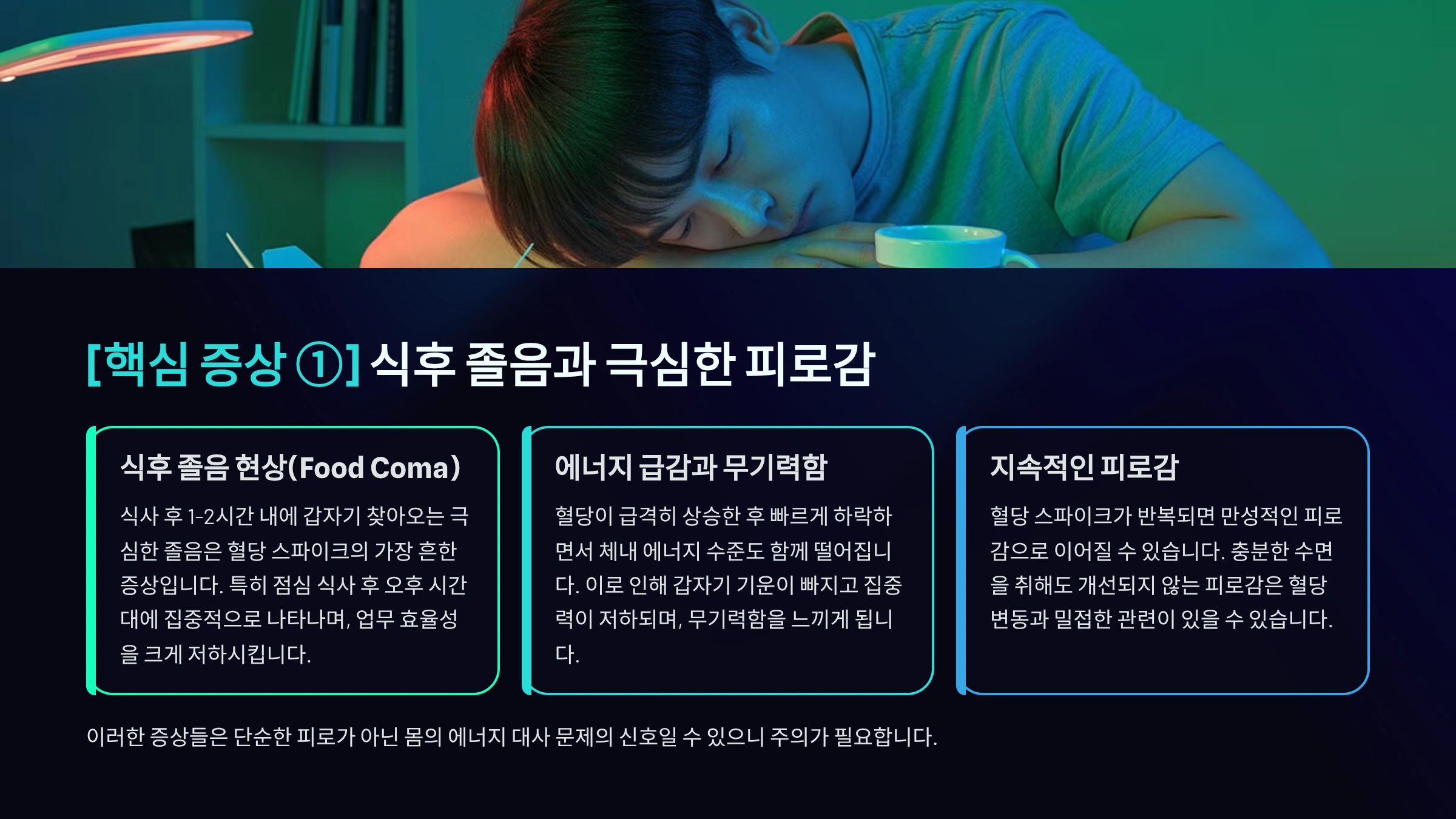 2. [혈당 스파이크 핵심 증상 ①] 식후 졸음과 극심한 피로감 😴