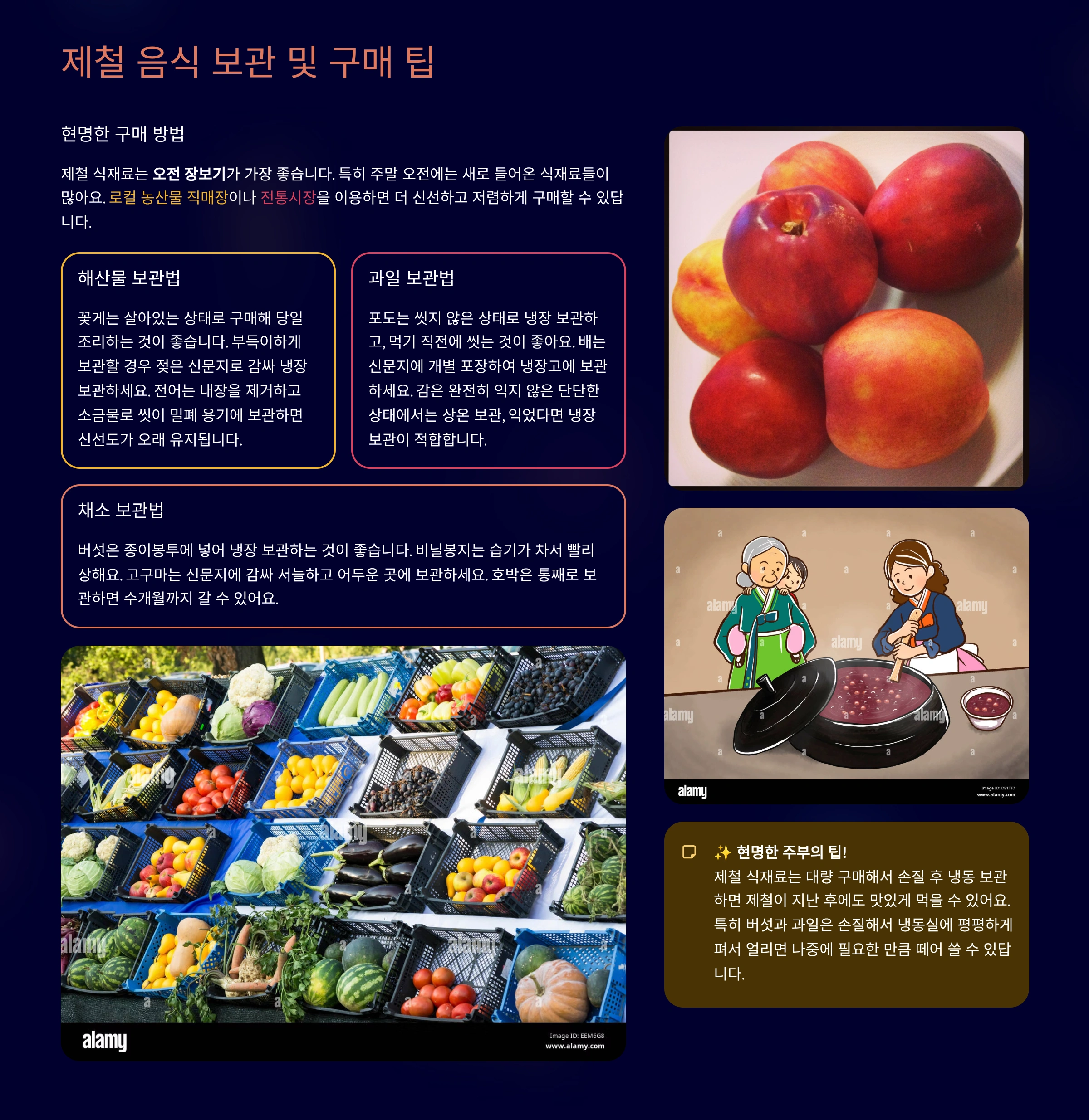 싱싱한 제철 음식을 제대로 즐기기 위해서는 구매와 보관 방법도 중요합니다.