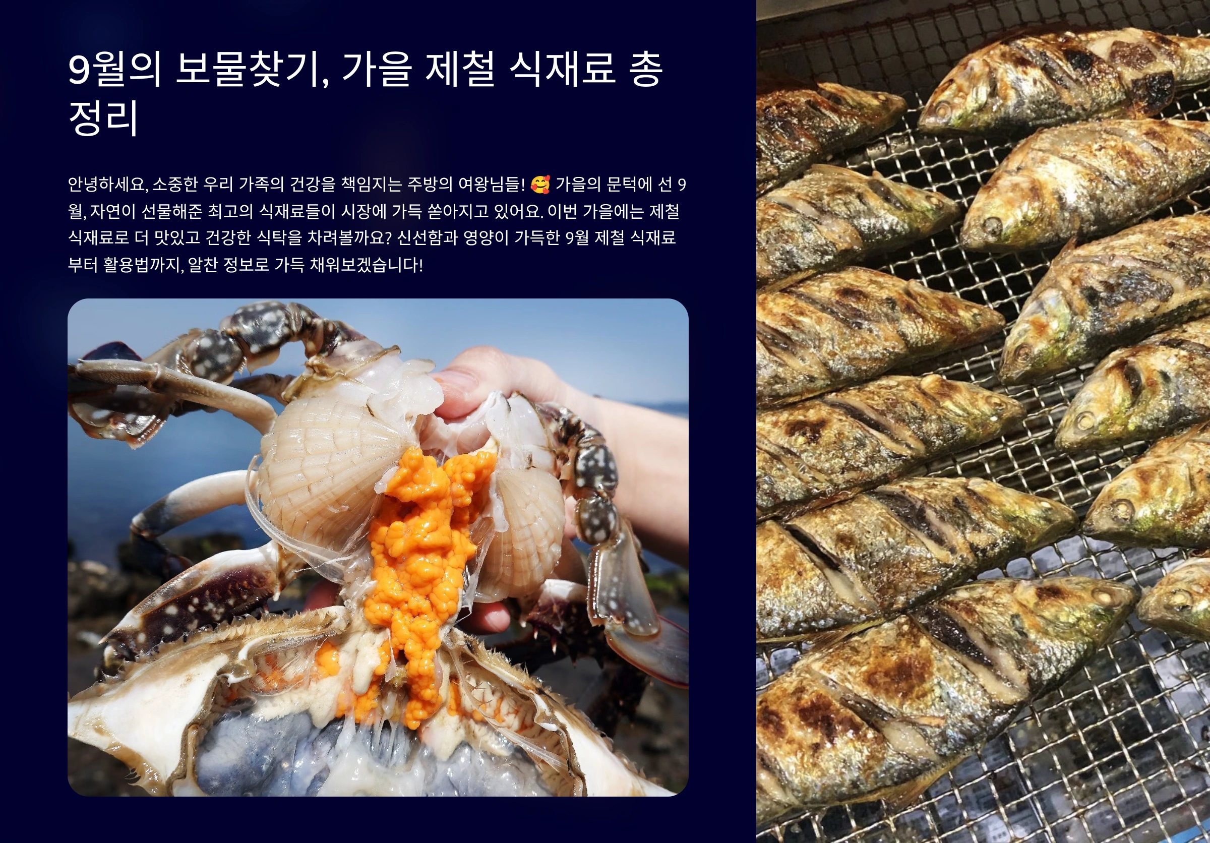 싱싱한 제철 재료를 활용해 더욱 풍성한 식탁을 차려보세요.