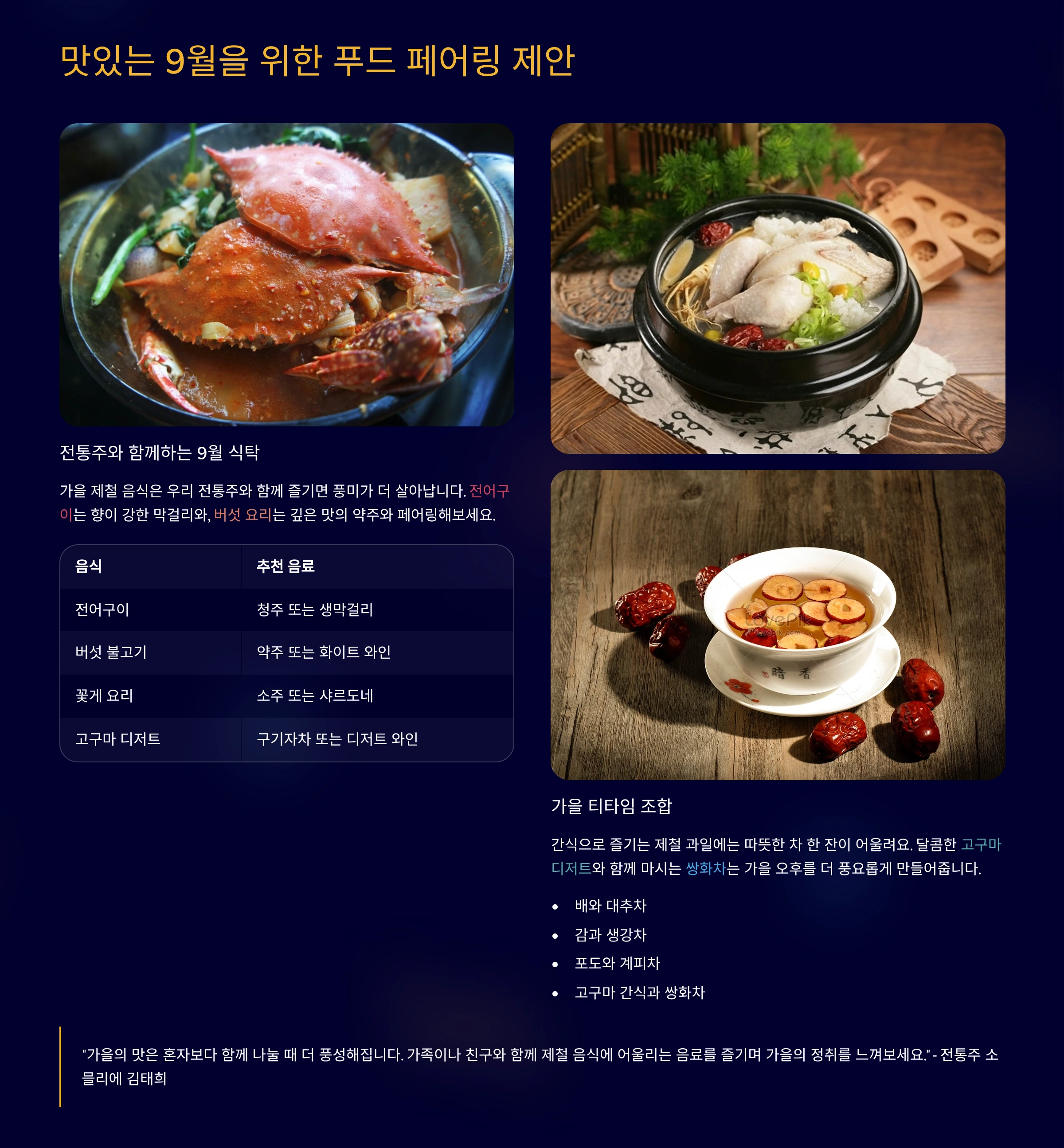 맛있는 9월을 위한 푸드 페어링 제안 🍷